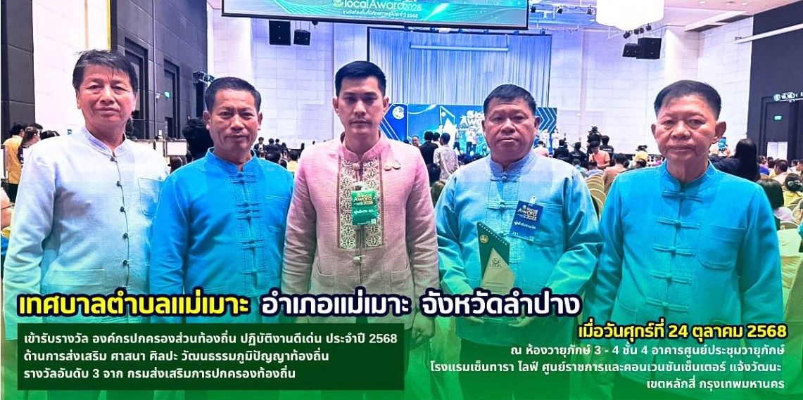 กรมส่งเสริมการปกครองท้องถิ่นได้มอบรางวัลท้องถิ่นที่มีศักยภาพสูง ประจำปี 2568 (Local Award 2025) ให้แก่ เทศบาลตำบลแม่เมาะ