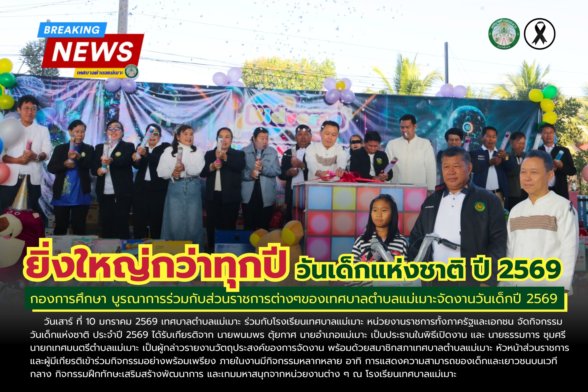 วันเสาร์ ที่ 10 มกราคม 2569 เทศบาลตำบลแม่เมาะ ร่วมโรงเรียนเทศบาลแม่เมาะ หน่วยงานราชการทั้งภาครัฐและเอกชน จัดกิจกรรมวันเด็กแห่งชาติ ประว่าปี 2569 ได้รับเกียรติจาก นายพนมพร ตุ้ยกาศ นายอำเภอแม่เมาะ เป็นประธานในพิธีเปิดงาน และ นายธรรมการ ชุมศรี นายกเทศมนตรีตำบลแม่เมาะ เป็นผู้กล่าวรายงานวัตถุประสงค์ของการจัดงาน พร้อมด้วยสมาชิกสภาเทศบาลตำบลแม่แม่เมาะ