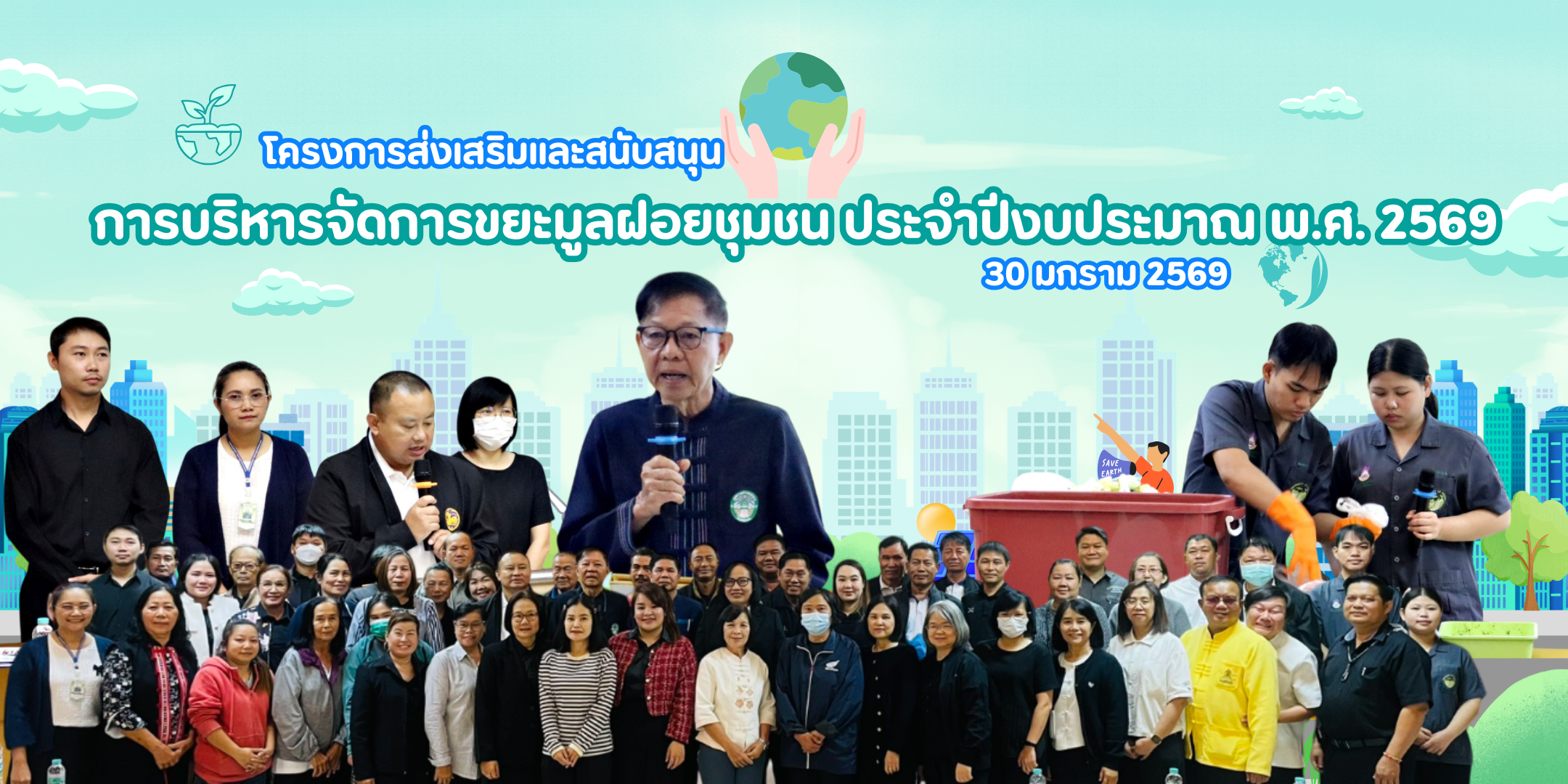 วันนี้ (30 มกราคม 2569) นายชูชีพ บุนนาค รองนายกเทศมนตรีตำบลแม่เมาะ ให้เกียรติเป็นประธานในพิธีเปิดโครงการ พร้อมด้วยคณะผู้บริหาร สมาชิกสภาเทศบาลตำบลแม่เมาะ และหัวหน้าส่วนราชการเข้าร่วมกิจกรรม โดยมีวัตถุประสงค์เพื่อส่งเสริมการจัดการขยะมูลฝอยอย่างเป็นระบบ ตั้งแต่ ต้นทาง กลางทาง และปลายทาง รวมถึงส่งเสริมการมีส่วนร่วมของภาครัฐ ภาคเอกชน และภาคประชาชน ในการลดปริมาณขยะและลดการปล่อยก๊าซเรือนกระจก มุ่งสู่เป้าหมายการพัฒนาอย่างยั่งยืน (Sustainable Development Goals : SDGs)