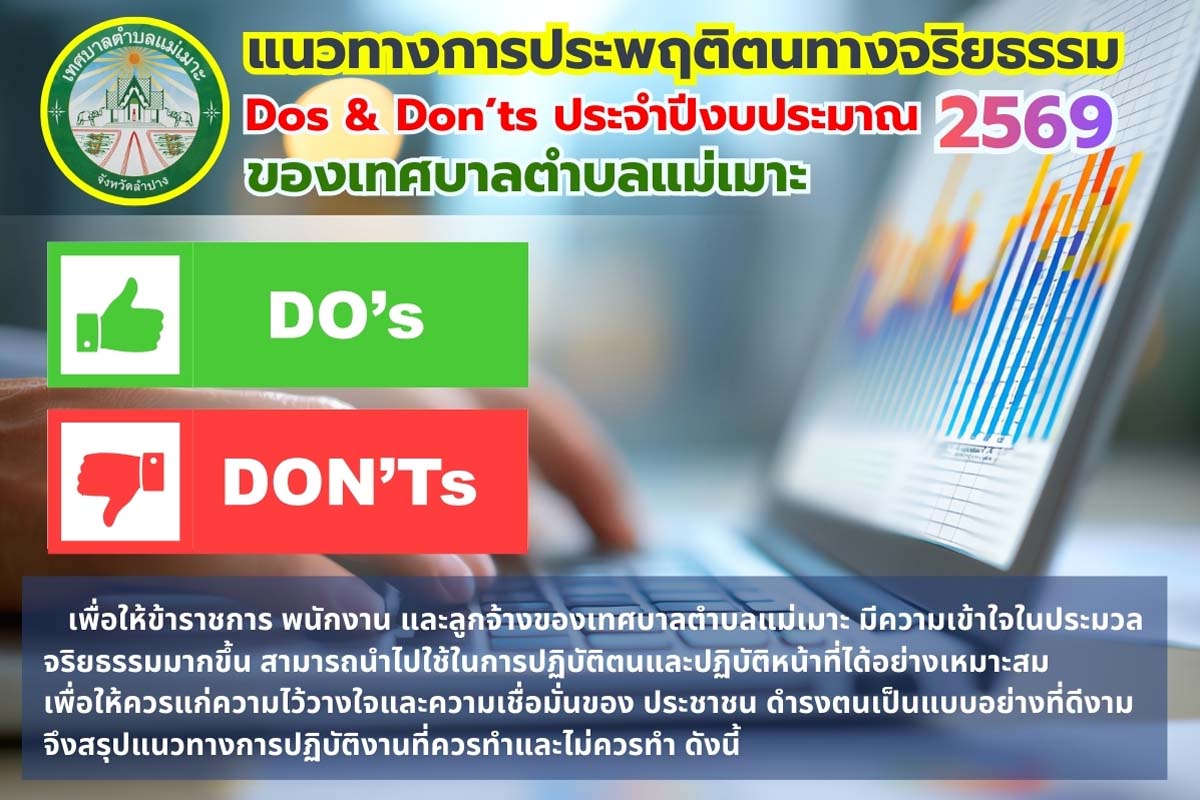 แนวทางการประพฤติตนทางจริยธรรม Dos & Don’ts ประจำปีงบประมาณ 2569 ของเทศบาลตำบลแม่เมาะ