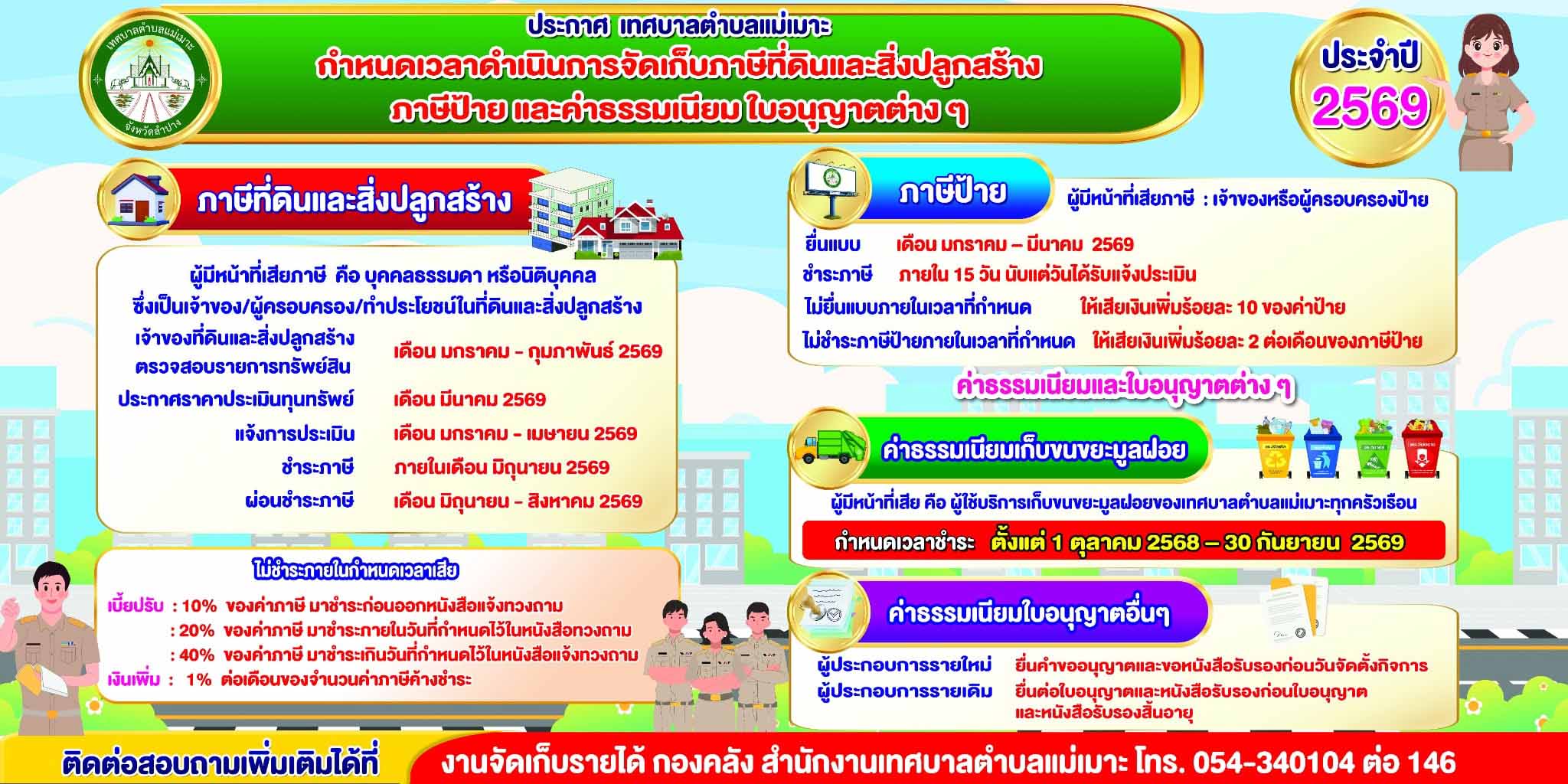เทศบาลตำบลแม่เมาะ จัดโครงการส่งเสริมและพัฒนาความรู้ตามหลักปรัชญาเศรษฐกิจพอเพียงกองสาธารณสุขและสิ่งแวดล้อม เทศบาลตำบลแม่เมาะ ลงพื้นที่ตรวจติดตามการปฏิบัติตามมาตรการด้านสิ่งแวดล้อมในการทำเหมืองแร่กองสวัสดิการสังคม จัดโครงการส่งเสริมและพัฒนาคุณภาพชีวิตคนพิการ ประจำปีงบประมาณ 2569ประชุมคณะกรรมการจัดการสิ่งปฏิกูลและมูลฝอยเทศบาลตำบลแม่เมาะ เพื่อขับเคลื่อนการบริหารจัดการขยะในพื้นที่อย่างเป็นระบบและยั่งยืนคณะกรรมการติดตามและประเมินผลฯ ลงพื้นที่ตรวจประเมินโครงการไฟฟ้าพลังงานแสงอาทิตย์ อ่างเก็บน้ำเมาะสถานี